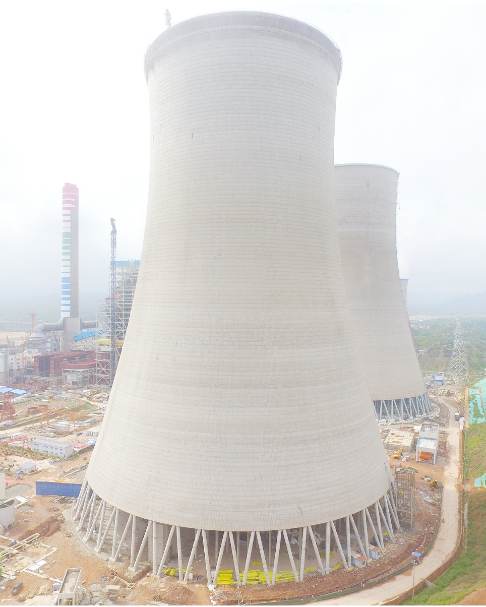 烟塔施工分公司华能瑞金电厂二期扩建工程4号高位收水冷却塔工程喜结金顶